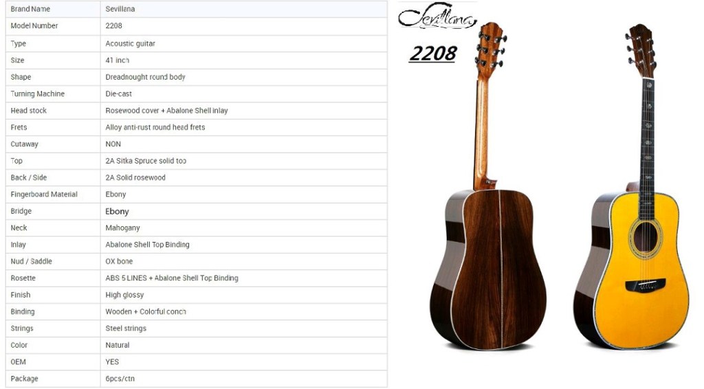 One rep from Deviser Guitars in China named Cherry and I have stayed in contact for over a year now. Recently, the company started making a solid-top dreadnought acoustic that, from the photos, appeared to be a quality product. The Sevillana 2208 “looked” like it could compete with other mid-line dreadnoughts, but a lot of stuff coming out of Asia is a gamble.