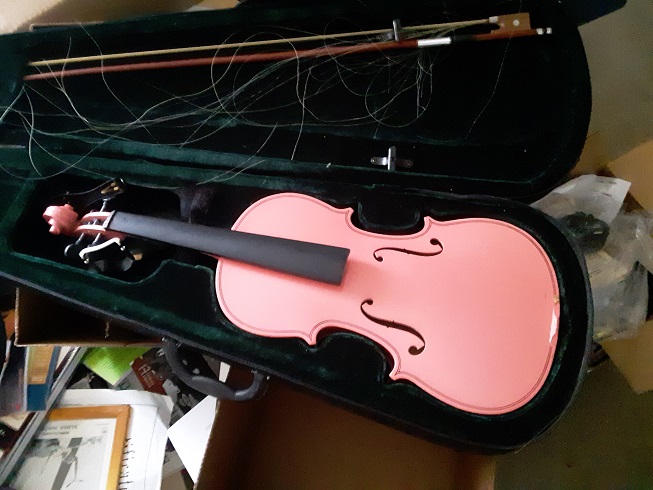 I got around time this past week to work on the pink violin that I talked about a few weeks ago (https://luegra.design.blog/2024/03/02/working-on-a-pink-fiddle/). Basically, it needed a new bridge, strings, and replacing the bow. The results of my work was a bit of a let down, but not a failure.
